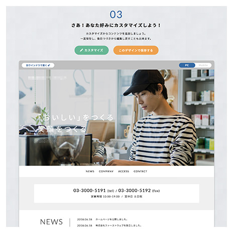 自分の手で、手軽にリニューアルが可能です。デザインはトレンドに合わせ、自動で更新。変更の手間いらず。